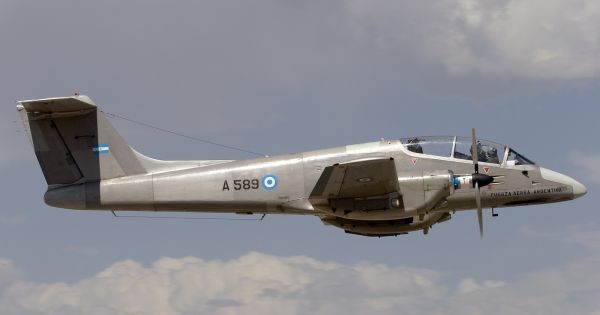 Pucará z argentinského letectva umístěná na Falklandách během konfliktu se zúčastnila mnoha misí proti britským silám.