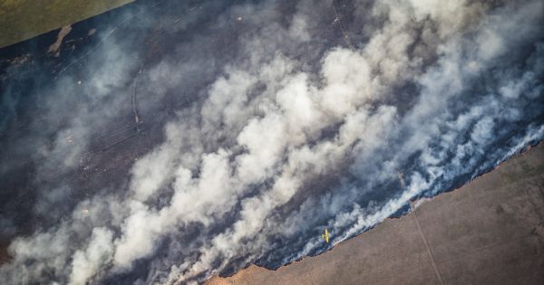 Lesný požiar počas sucha z roku 2023 bojuje fumigátorské lietadlo v Roche, východne od Uruguaja. Foto: Sebastián Astorga Rostani.