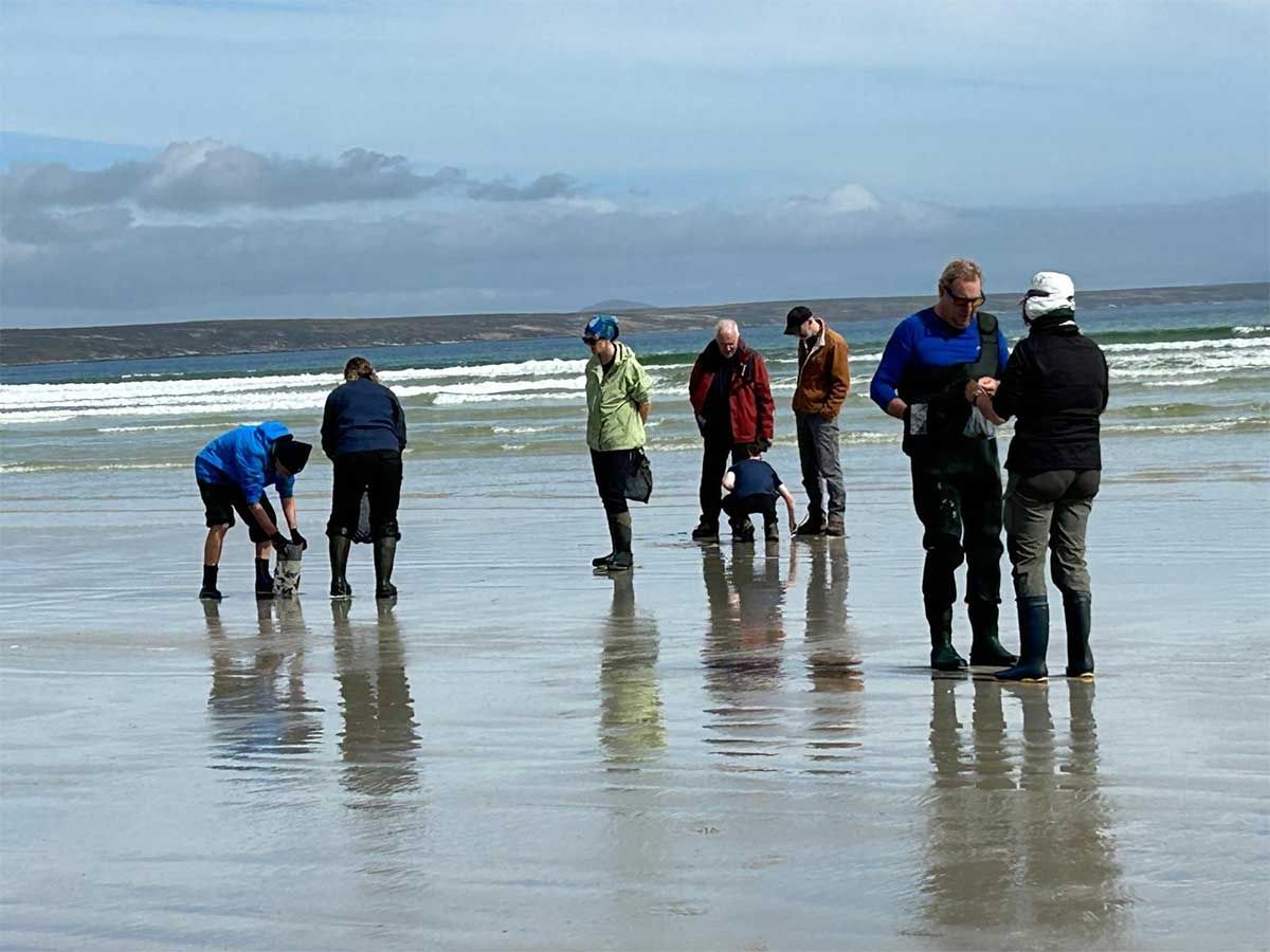 Tím výskumníkov, ktorí pracujú a zbierajú vzorky na plážach Falkland